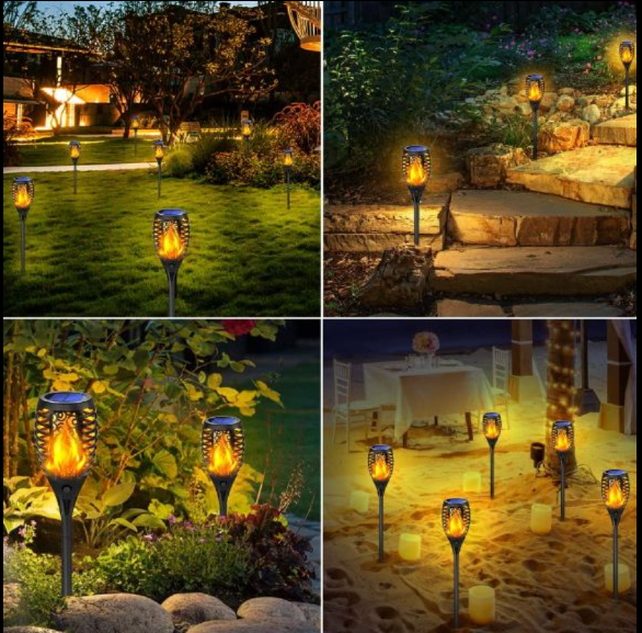 תאורה חוץ סולארית לגינה בצורת לפיד בעלת 12 לדים, המדמה להבה אמיתית!