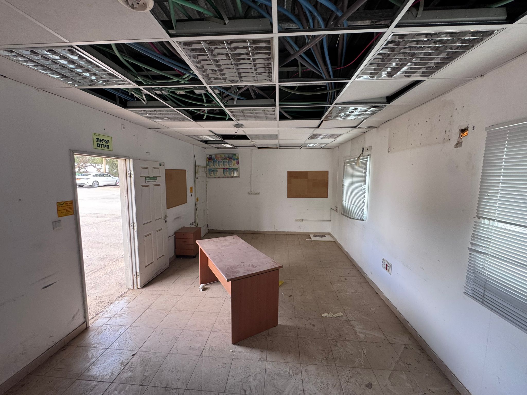 - פנים המבנים מחופה קירות גבס, עם תקרה אקוסטית.