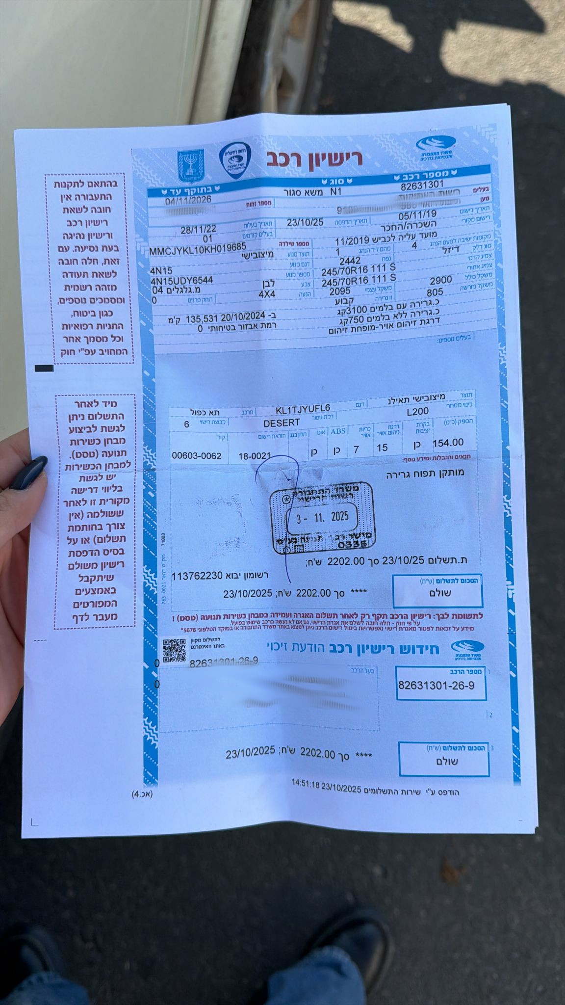 מיצובישי L200 DESERT, 2019 המכירה תתחיל ב: 30/12/2025 בשעה 11:00